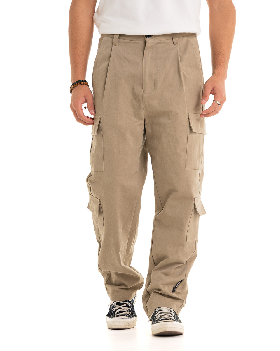 Pants Wide Cargo Beige
